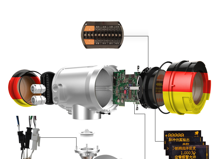 6.勵磁線及電極線均采用優(yōu)質的單芯屏蔽線,可降低干擾,提高信號的潔凈度,從而提高測量精度。
