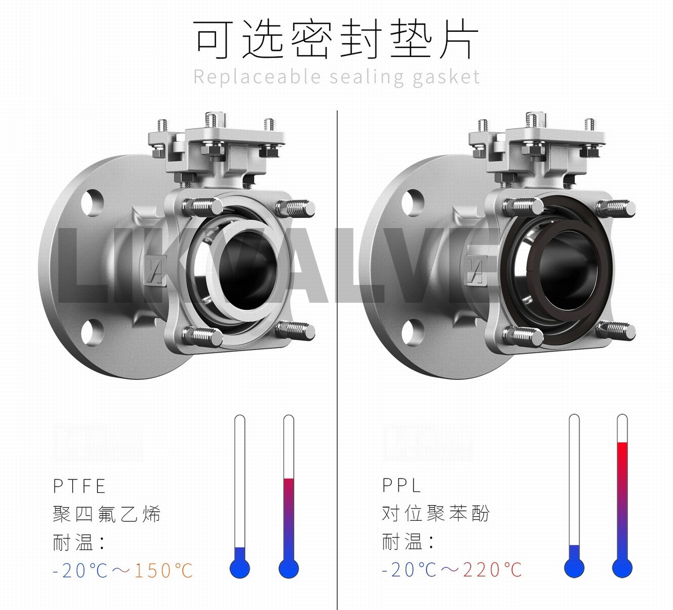 1,根據工況需要氣動法蘭式球閥可分為軟密封(-30~180℃)和硬密封(-40~450℃)兩種密封結構,以便在不同介質、不同溫度及不同壓力的場所中合理使用。